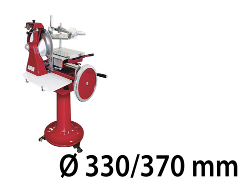 Affettatrice a volano esclusivamente manuale, completa di colonna di supporto in ghisa - Diametro lama 330/370 mm.