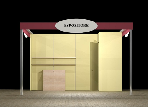 Stand espositivo 16 mq (m 4x4) con tre lati aperti, fornito con le seguenti caratteristiche: